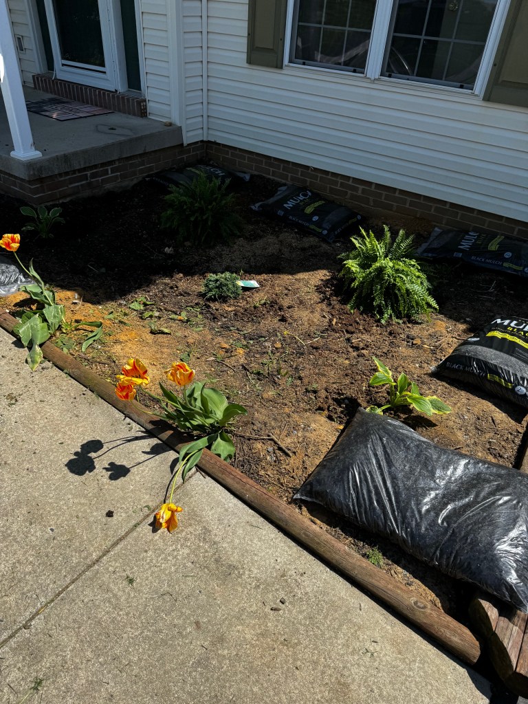 For this project we revived old flower beds by tilling, laying down fresh weed barrier, and planting new foliage of the customer’s choosing. We topped it off with a fresh layer of mulch. The finished product left this home with a clean look and upped the curb appeal significantly.
